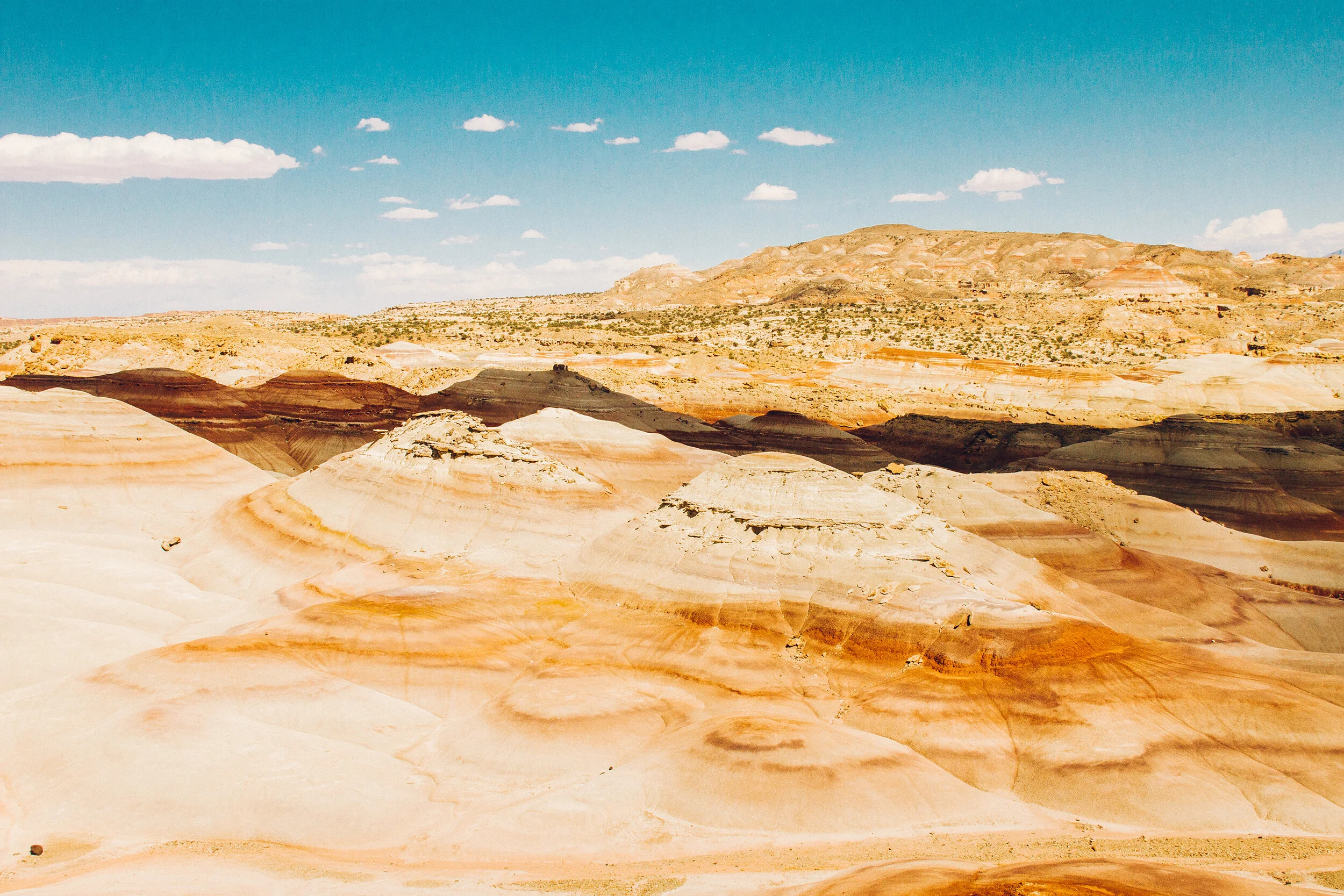 The next part of our journey was pretty much entirely off the grid. We filled up our whip with a full tank of gas, stocked up on the necessities to camp for the evening and headed out in pursuit of Cathedral Valley. I had previously seen photographs of Cathedral Valley and had been anxiously awaiting for my chance to witness the area. Its awe and splendor was something far beyond anything I could comprehend upon arrival. Not to mention this part of the park is remote and only about 10% of visitors access it.